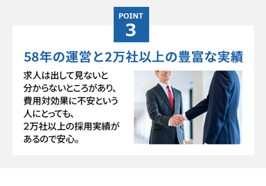ご提案できるので、ミスマッチが少なく、無駄な費用がかかりません。